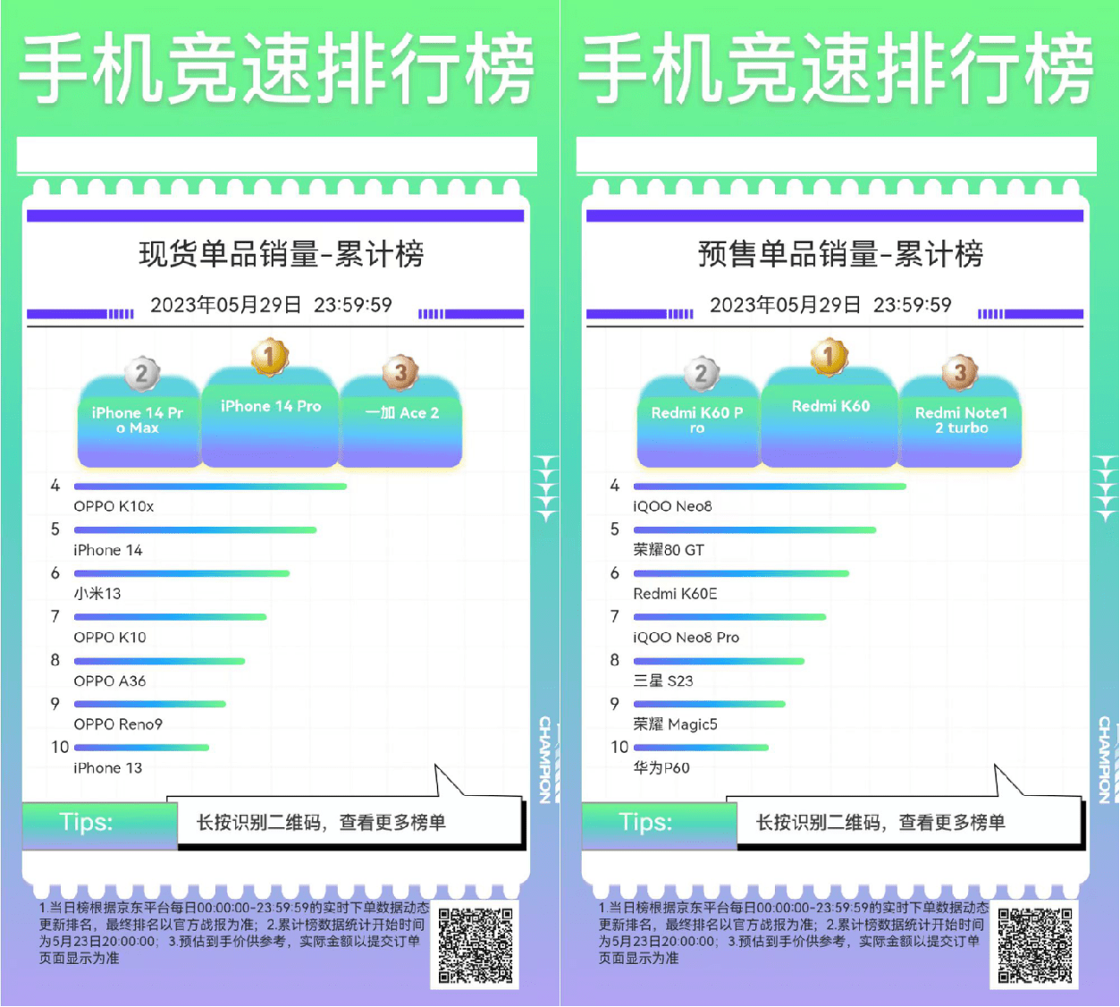 京东618预售于5月23日晚8点开启,手机预售竞速排行榜同步上线。该榜单基于真实销售数据,对参与京东618的品牌及产品进行排名,为消费者提供专业购机参考,让用户享受“省心价 放心换”的购机体验。在榜产品性能、优惠力度双双在线,不知道选择什么手机的消费者可以跟着手机竞速排行榜来选择,还有爆款30价保服务,省钱又省心。下面就一起看看有哪些在榜手机可以跟着买吧!