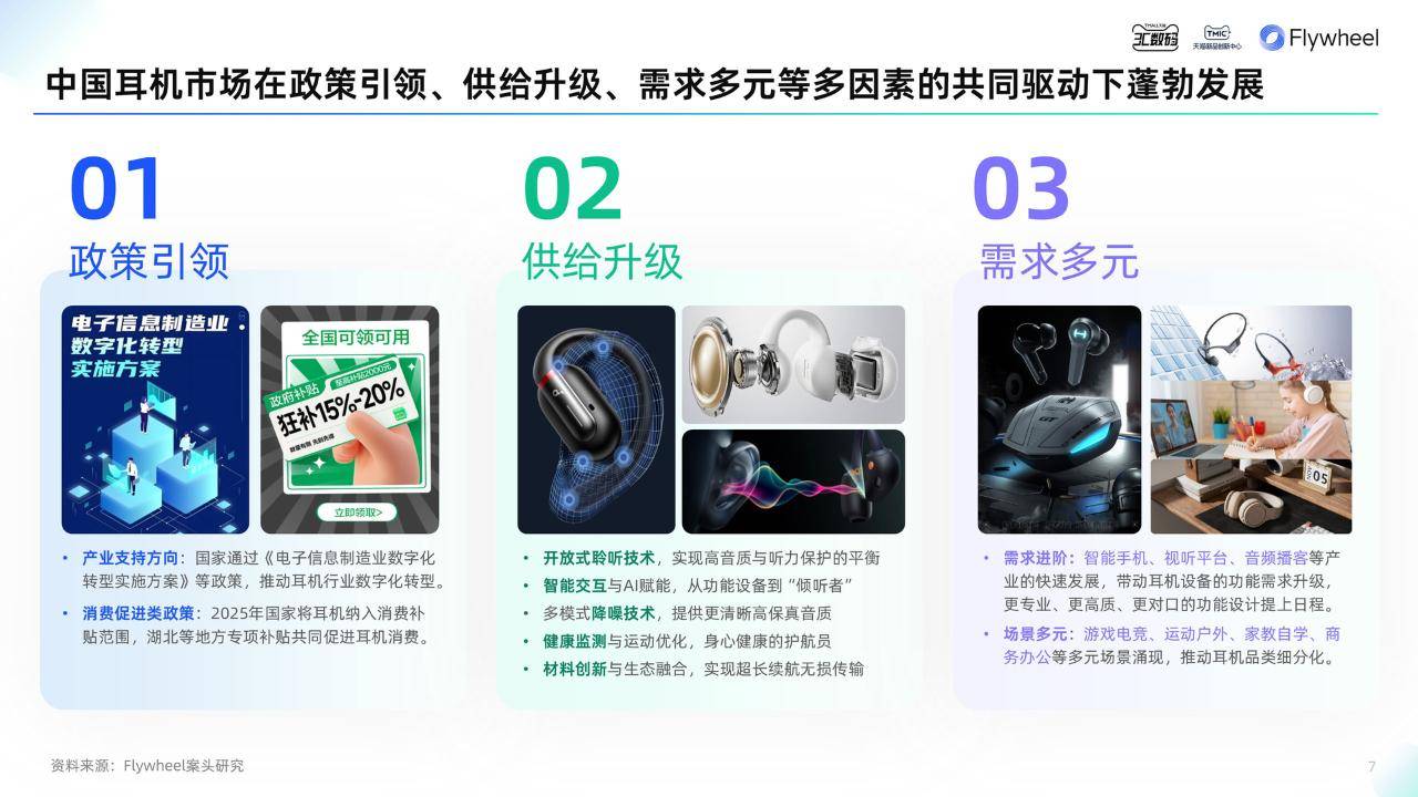 中国市场的蓬勃活力,不仅体现在规模增长上,还反映在其高度成熟且创新的线上销售生态中。当前,线%的销售份额,其中以淘天为代表的传统电商贡献了62%的耳机销量,构筑了行业销售的主阵地。中国耳机市场的快速增长,是政策引领、供给升级、需求多元等多重元素共同作用的结果。