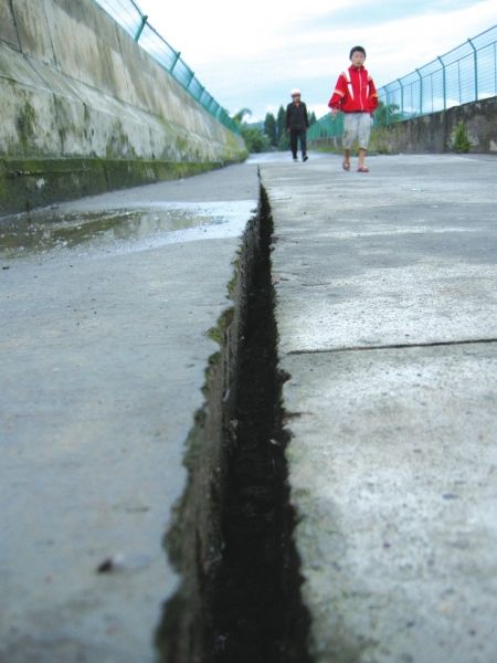 与此同时,天桥险情不断加剧。“刚开始时,裂缝没得这么大。”村民李元祥昨日上午9时在裂缝处放了一截长约2厘米的草。到上午11时,那截草便掉下去了。而到了下午5时,裂缝更是宽至约5厘米。
