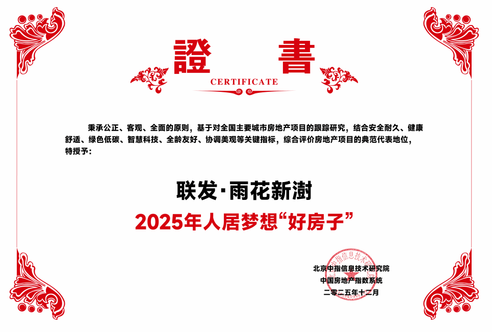 据中指研究院发布的2025年中国房地产产品力测评成果,联发雨花新澍上榜“2025年人居梦想‘好房子’”;联发新澍系产品更是登上住建部 “好房子科技展”,成全国新青年住宅示范样本。