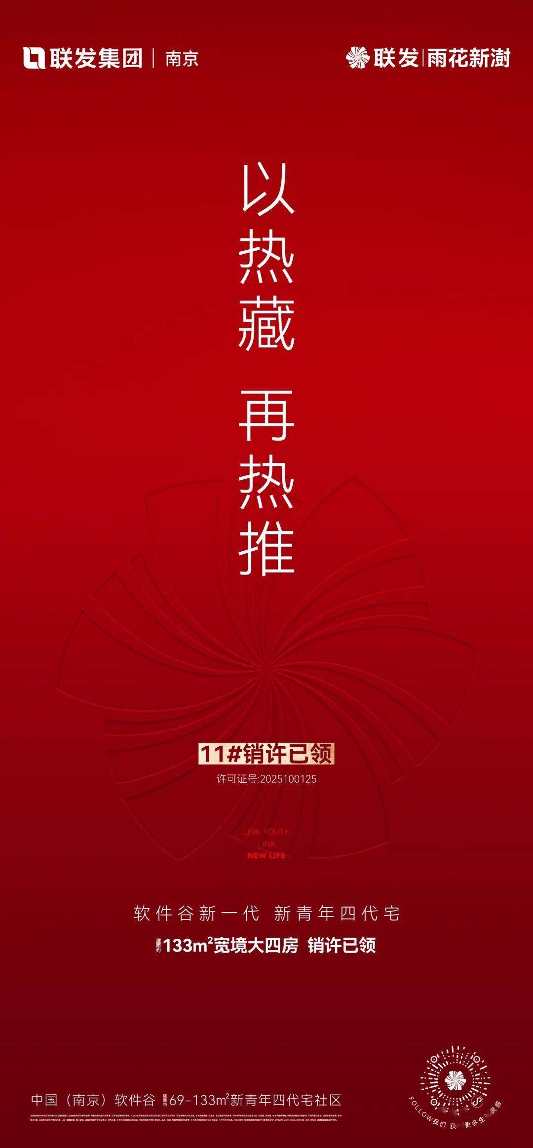 刚刚传来最新消息,联发雨花新澍6#楼32套建面约133㎡户型已售罄;11#楼销许已领,建面约133㎡宽境大四房即将加推,先到先得。作为软件谷唯一的四代宅改善四房,联发雨花新澍正持续以强劲势能引领市场,为南京楼市注入年轻活力。