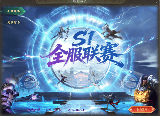 活动期间,每位等级达到80级的修行者,每日均可在限时活动-全服联赛页面点击宝箱领取星云散聚石奖励。