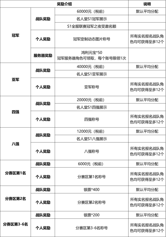 4.总决赛两支战队进行BO5对决,胜者为S1服务器联赛冠军,败者为S1服务器联赛亚军。