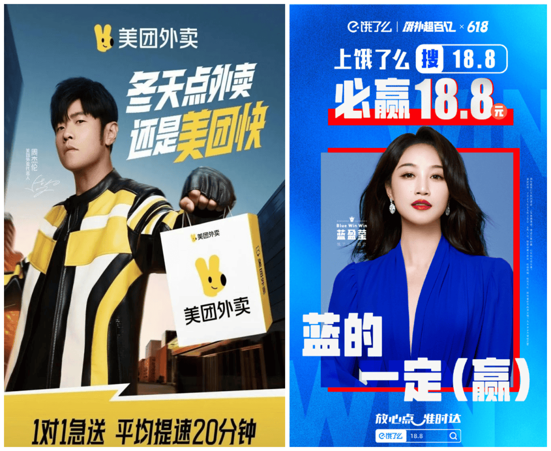“礼遇大使”,联动王星越、许凯等6位品牌大使集体站台,叠加福利红包,将平台代言营销的热度推向新高。在白热化的流量争夺战中,外卖平台明星代言早已不是单个代言人的“孤军奋战”,彻底颠覆了以往依赖单个代言人“以小搏大”的营销模式。