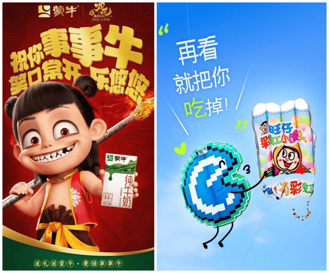 同样,蒙牛与《哪吒2》开展IP深度联名,不仅推出联名包装、定制动画番外篇,更将品牌“天生要强”的理念与影片“我命由我”的精神深度绑定,实现情感共鸣与销量转化双重突破。其中,奶粉销量超同期
