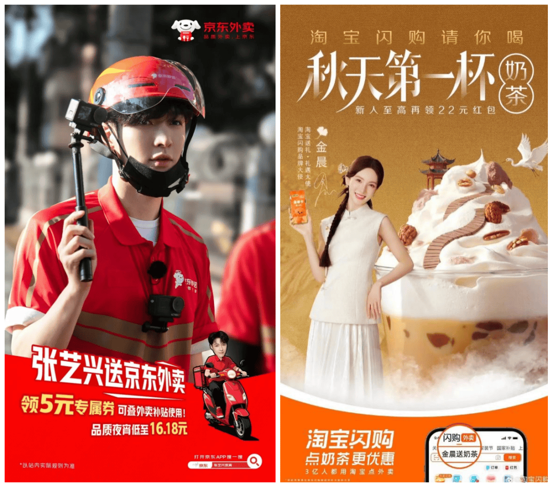 从二月宣布进军外卖市场并提出“0佣金”招募商家、为骑手缴纳五险一金,到四月邀请CEO刘强东亲自送外卖,更让张艺兴以“潮流代言人”身份亲自出镜送外卖,叠加百亿补贴计划持续加热,短短90天日订单量突破2500万单,线亿,迅速在外卖市场抢占用户心智。如期而至的“秋天第一杯奶茶”,让淘宝闪购、美团等外卖平台带着明星代言冲到台前,成为2025年这场季节性营销战的核心玩家。