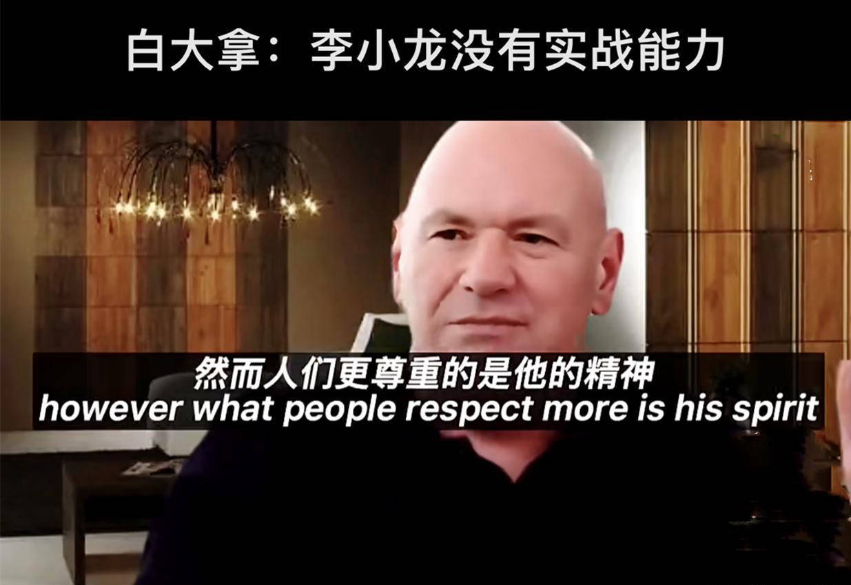 白大拿在接受采访时发表了一席震撼性观点,称李小龙缺乏实战经验,任何一名拳手都有机会战胜他,而人们只是尊重他的武术精神。